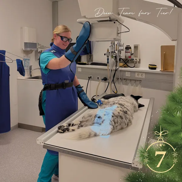 In unserem Röntgenraum werden täglich Aufnahmen gemacht, die für Diagnosen und Behandlungen unserer Patienten wichtig sind. Grundsätzlich werden die Tiere wach geröntgt. Nur bei sehr ängstlichen Tieren oder wenn es für die Qualität der Bilder notwendig ist, werden sie kurzzeitig narkotisiert, damit die Aufnahmen optimal gelingen.